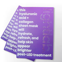 Experience the ultimate post-LED treatment glow with LightLab's Hyaluronic Acid & Collagen Sheet Mask. This innovative sheet mask is formulated to amplify the benefits of LED therapy, leaving your skin hydrated, refreshed, and visibly brighter. Harnessing the power of Hyaluronic Acid and Collagen, the mask deeply nourishes and revitalises your skin, enhancing the results of LED treatment for a radiant and luminous complexion. Elevate your skincare routine with the perfect companion to your LED sessions and let your skin shine with renewed vitality.